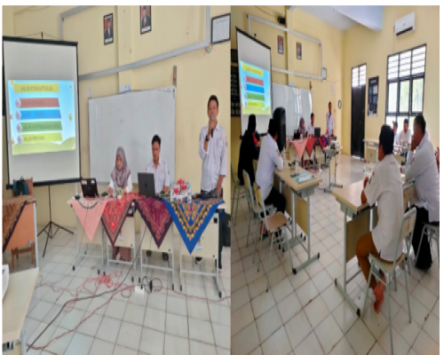 Dilanjutkan oleh Dudi Rudia Ningrum, S.Pd,M.Pd, terkait teknis dan penggunaan aplikasi PPDB 2023 mulai dari bagaimana siswa mendaftar online, verifikasi berkas, cara mengukur jarak menggunakan aplikasi google untuk menenetukan koordinat, point to point juga cara mengupload berkas-berkas sampai mencetak berkas pendaftaran.